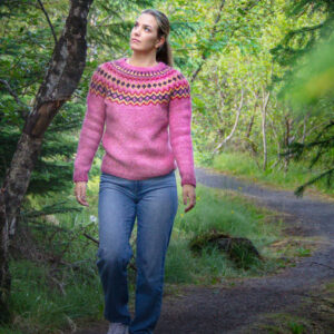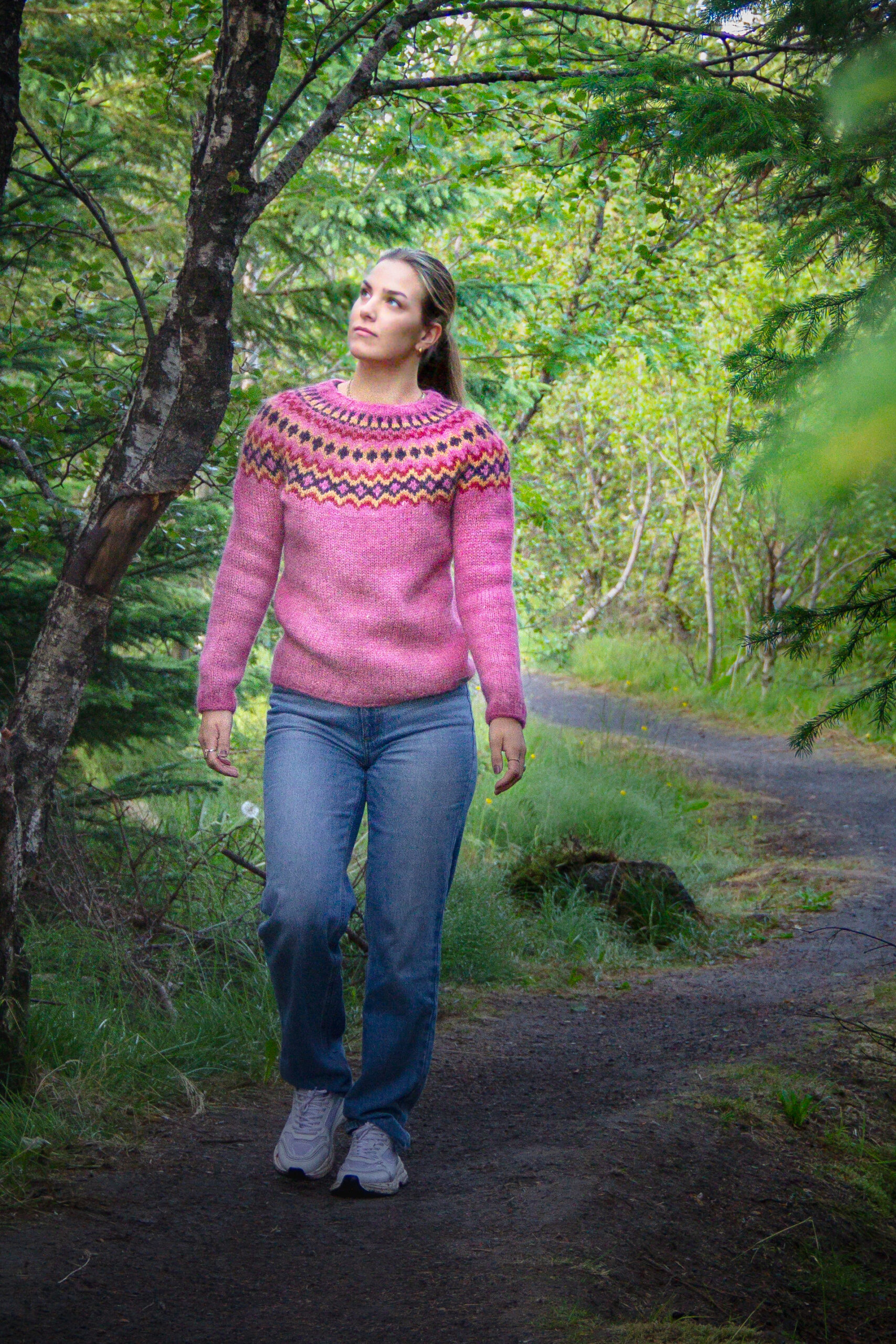 Traditional cardigan made of 100% Icelandic wool, here in a beautiful pink version.