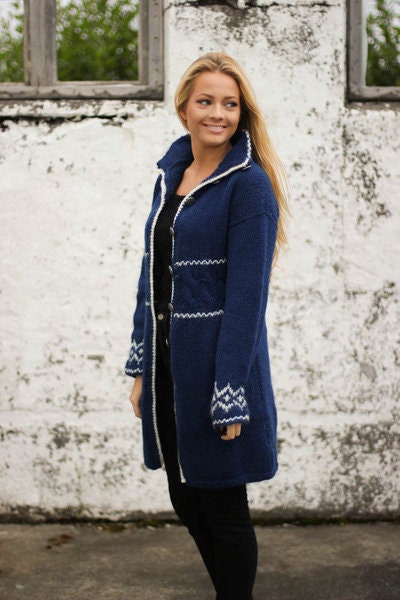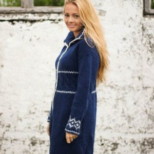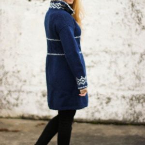 Mittið er með kaðlamynstri til að draga fram kvenlegar línur, og fallegt munstur á ermum og kraga.