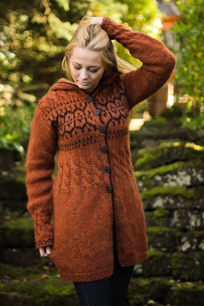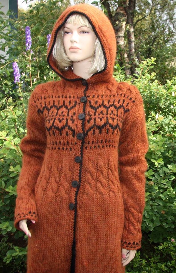 Mittið er með kaðlamunstri til að draga fram kvenlegar línur, og fallegt munstur liggur yfir brjóskassann.
