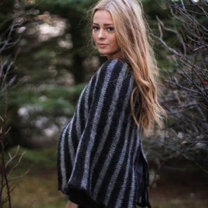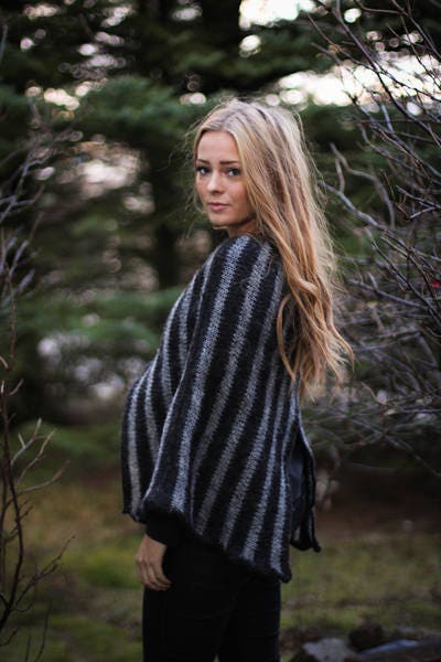 Ponchoið fellur fallega niður og er örlítið þæft til að fá skemmtilega áferð á prjónið.