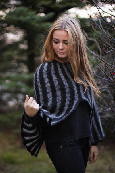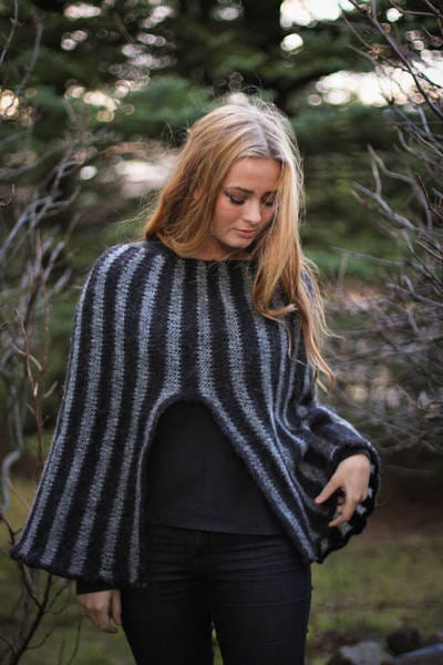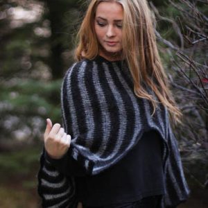 Flott poncho, prjónað úr blöndu af einbandi og plötulopa.