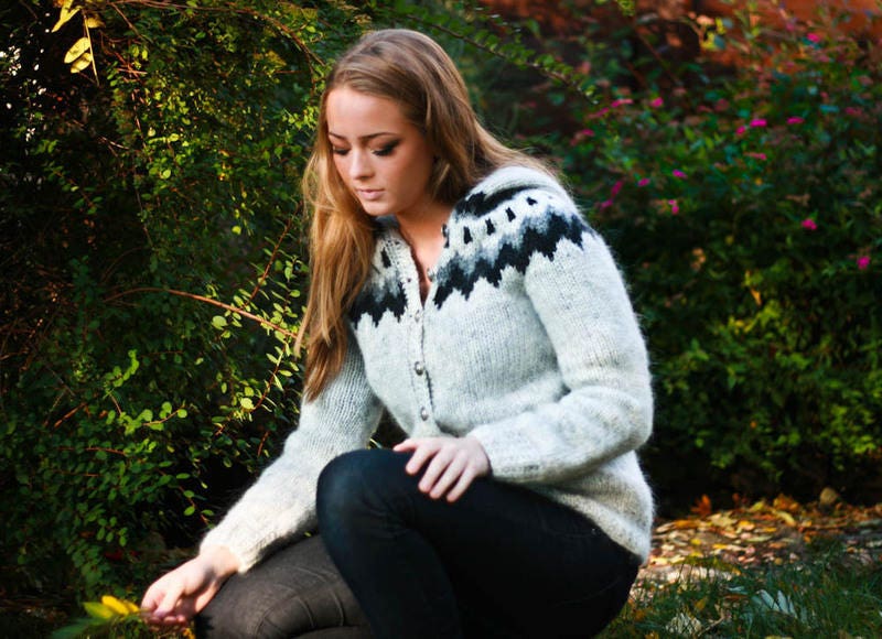 Allar peysur eru handprjónaðar í samvinnu við kaupandann og hægt er að velja liti, stærð og útfærslur eftir óskum.