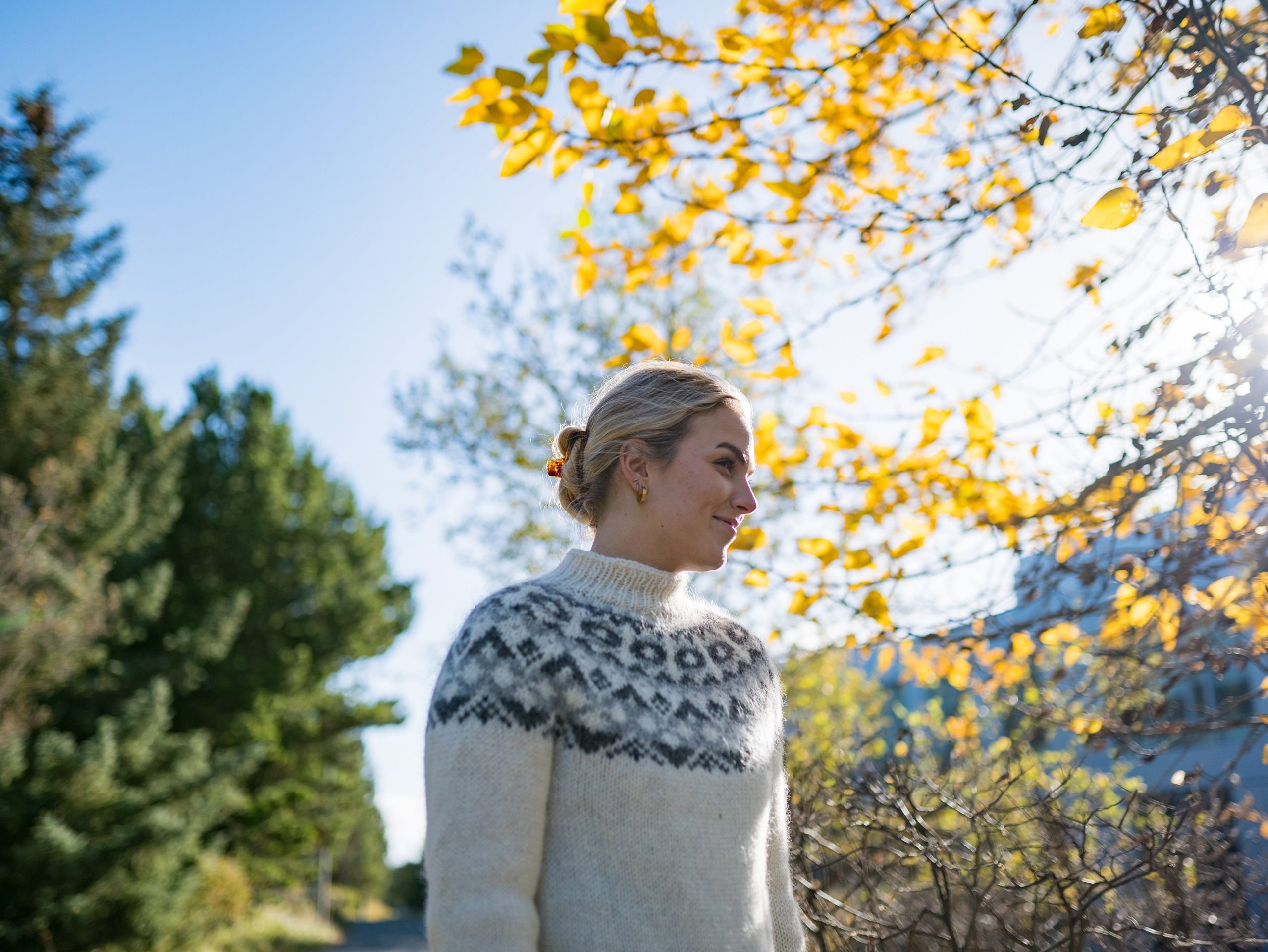 Allar peysur eru handprjónaðar í samvinnu við kaupandann og hægt er að velja liti, stærð og útfærslur eftir óskum.