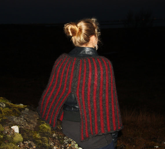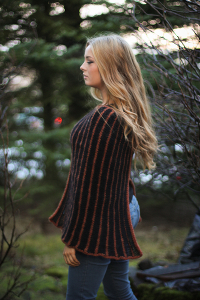 Flott poncho, prjónað úr blöndu af einbandi og plötulopa.