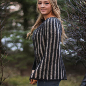 Ponchoið fellur fallega niður og er örlítið þæft til að fá skemmtilega áferð á prjónið.